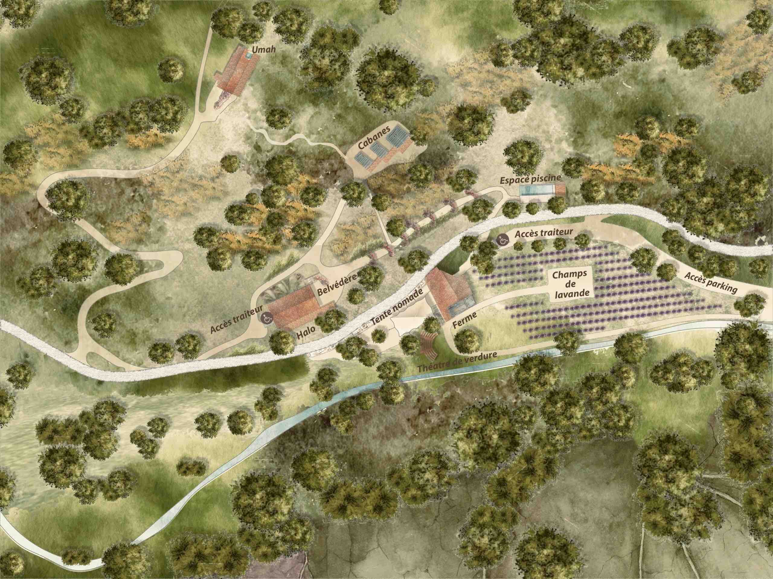 Véritable pièce maîtresse du domaine, le Halo conjugue matériaux naturels et lignes contemporaines dans une architecture ouverte sur le paysage.