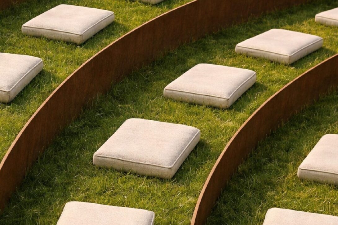 Le théâtre de verdure accueille les cérémonies au plus près de la nature. À l’ombre des arbres, le murmure du ruisseau accompagne chaque instant.